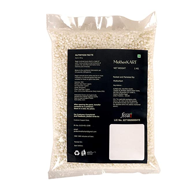 Motherkart Sabudana (Sago) 1kg Medium pearls - Gluten Free